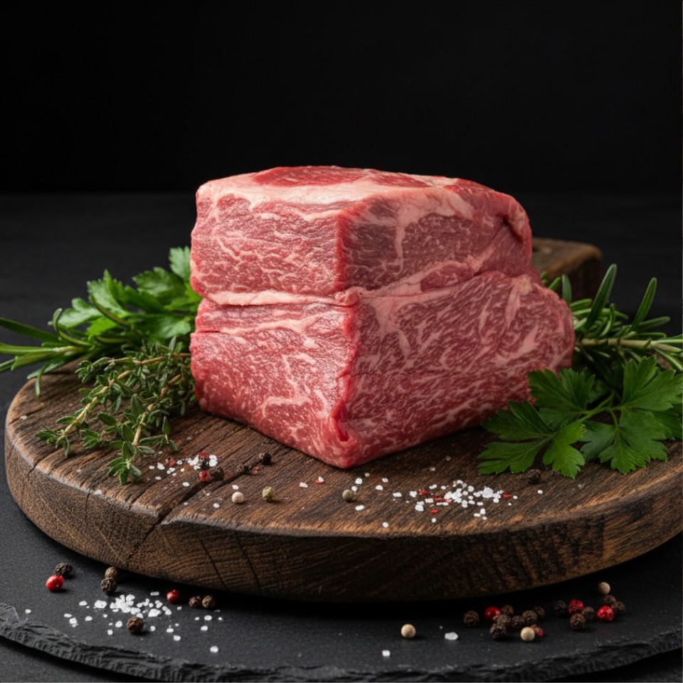 Unser Wagyu Beef aus dem heimischen Jura Gebirge ist mindestens 6 Wochen gereift und qualitativ sehr hochwertig. Das Fleisch ist besonders stark marmoriert. Es ist dadurch wahnsinnig aromatisch und saftig. Premiumfleisch von Höchster Qualität. Es ist eine Kreuzung zwischen Wagyu und Angus. Dieses Fleisch enthält bis zu 3 mal mehr Omega-3-Fettsäuren als Fleisch aus Stallhaltung.