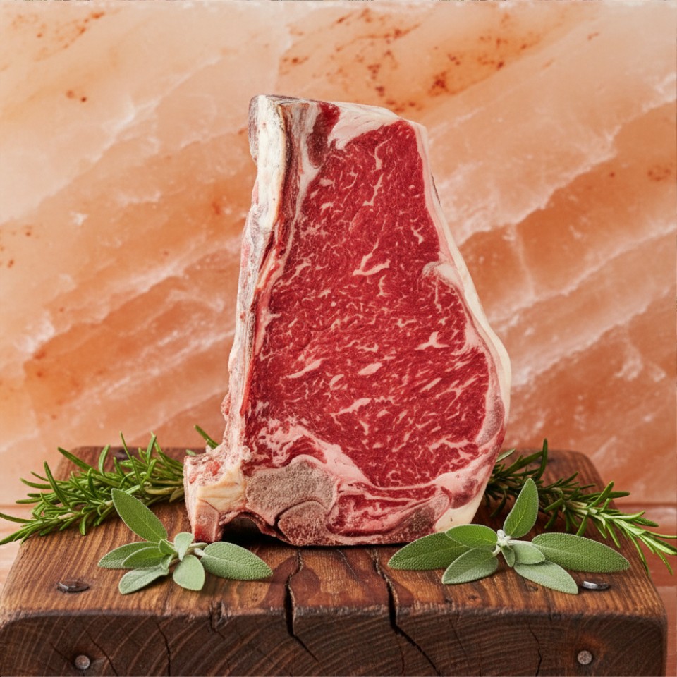 Hohe Qualität und besondere Produkte sind unser Anspruch und unsere Leidenschaft. Deshalb lassen wir unser Rindfleisch, welches wir von lokalen Erzeugern beziehen, am Knochen reifen. Das Fleisch stammt von selektierten Weiderindern.