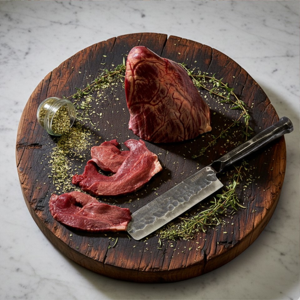 Das Rinderherz ist besonders mager, da es fast ausschließlich aus Muskelgewebe besteht. Es ist besonders zum kurzbraten geeignet aber auch für das Gericht "Saure Lunge und Herz" wird es verwendet. Unter BBQ-Freunden gilt es als Insidertip. Wir verwenden hier ausschließlich Fleisch von Weidelandrindern aus dem Frankenwald. Dieses Fleisch enthält bis zu 3 mal mehr Omega-3-Fettsäuren als Fleisch aus Stallhaltung.