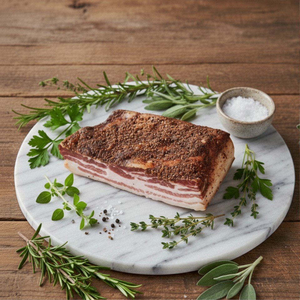 Unser Strohschwein Jausenspeck aus dem Schweinebauch ist eine absolute Delikatesse. Hergestellt von unserem Schinken-Sommelier Florian Köhn. Durch unser besonderes Reifeverfahren bleibt unser Schinken sehr schön saftig und erhält sein unverkennbares Aroma. Zur Abrundung wird der Schinken im Kaltrauch mehrere Tage geräuchert. Lassen Sie sich verführen und genießen Sie dieses wunderbare Produkt.