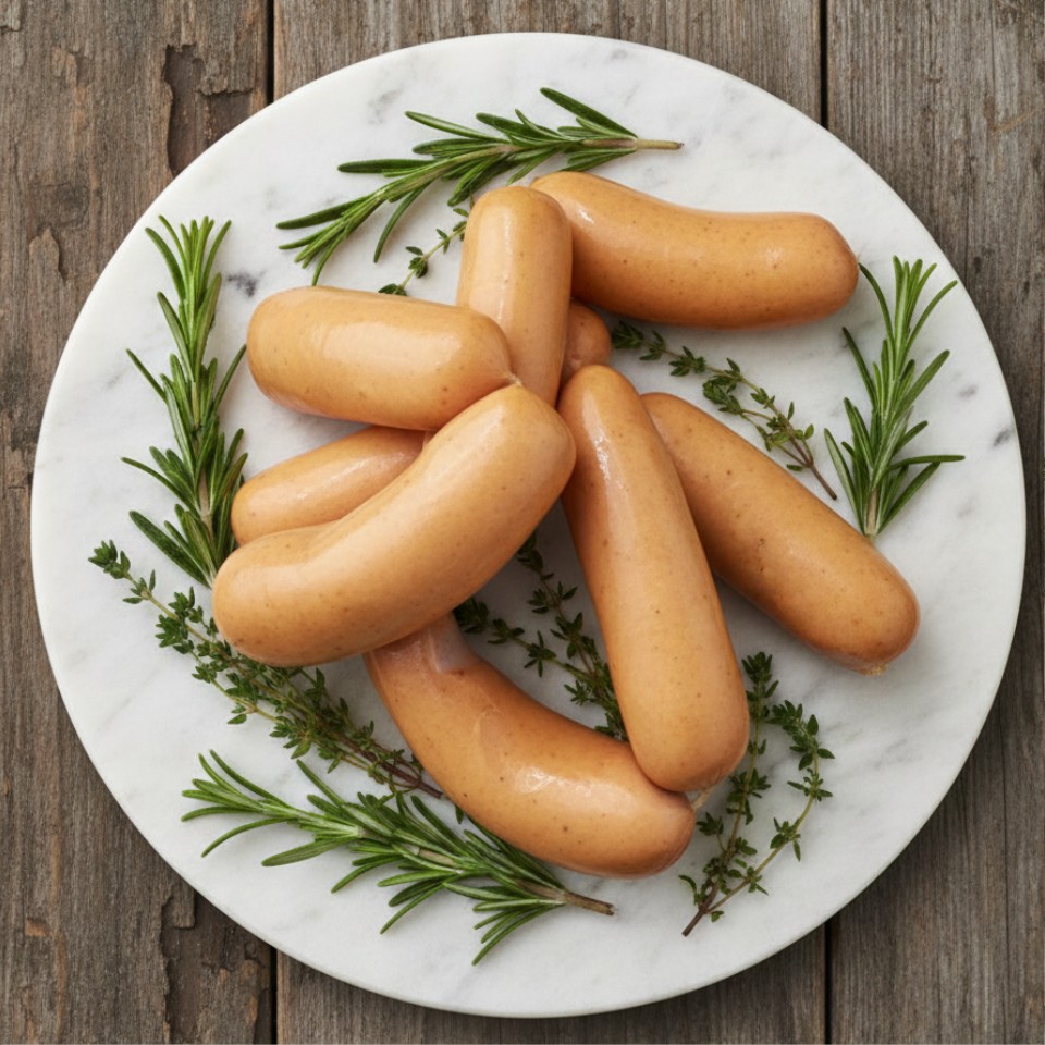 Der Klassiker unter den Würstchen. Unsere Wiener werden von Hand abgedreht und mild über Buchenholz geräuchert. Knackig im Biss und leicht würziges Aroma. 200g weise vakuumiert schicken wir Ihnen unsere fein, würzigen Wiener zu.