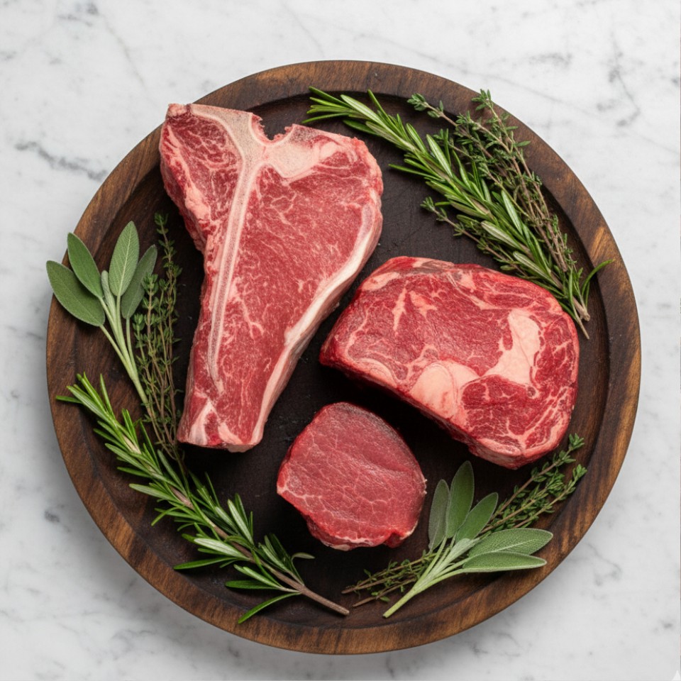 Sie erhalten ein mit Liebe zugeschnittenes Steakpaket der Extra-Klasse.