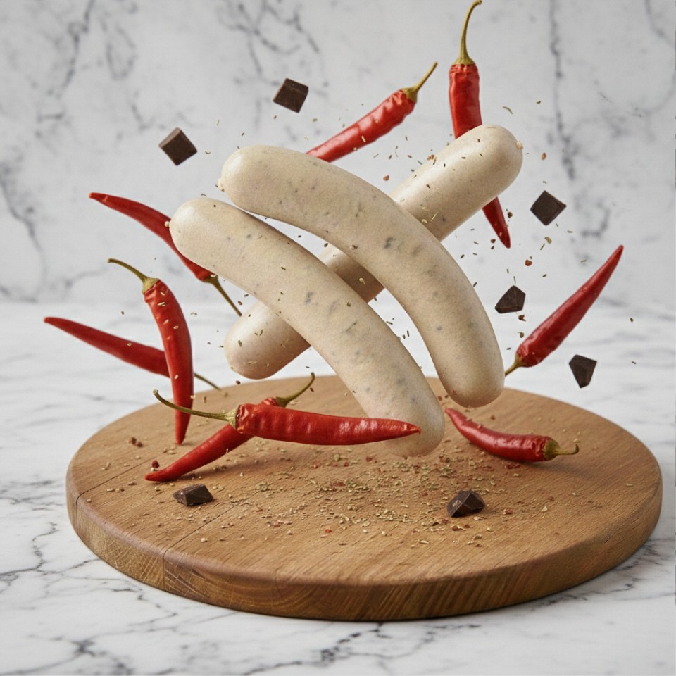 DIE Bratwurst des Jahres 2011 aus dem Hause Metzgerei Max. Aufregend anders, so kann man unsere Schoko-Chili Bratwurst wohl am besten beschreiben. Schmecken Sie die prickelnde Hochzeit von Scharf und Süß. Werden Sie Gesprächsthema Nummer 1 auf der nächsten Grillfeier. Achtung: leichte Schärfe...